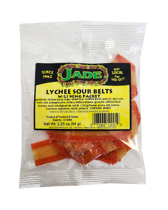 Jade Lychee Sour Belts w/Li Hing Packet 2.25 oz (NOT FOR SALE TO CALIFORNIA)